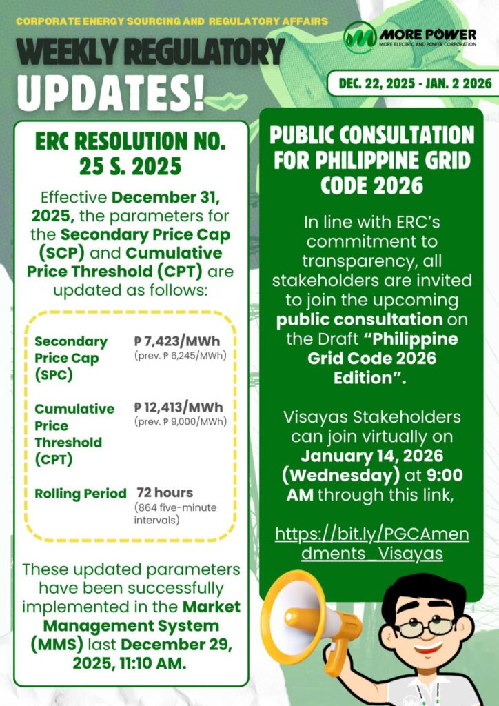 ALL MORE Power customers are entitled to the lower billing rate due to the deferment of the Wholesale Electricity Spot Market (WESM) portion of the generation charge, in compliance with the Energy Regulatory Commission’s (ERC) Order dated June 13, 2024, in ERC Case No. 2024-017-MC.